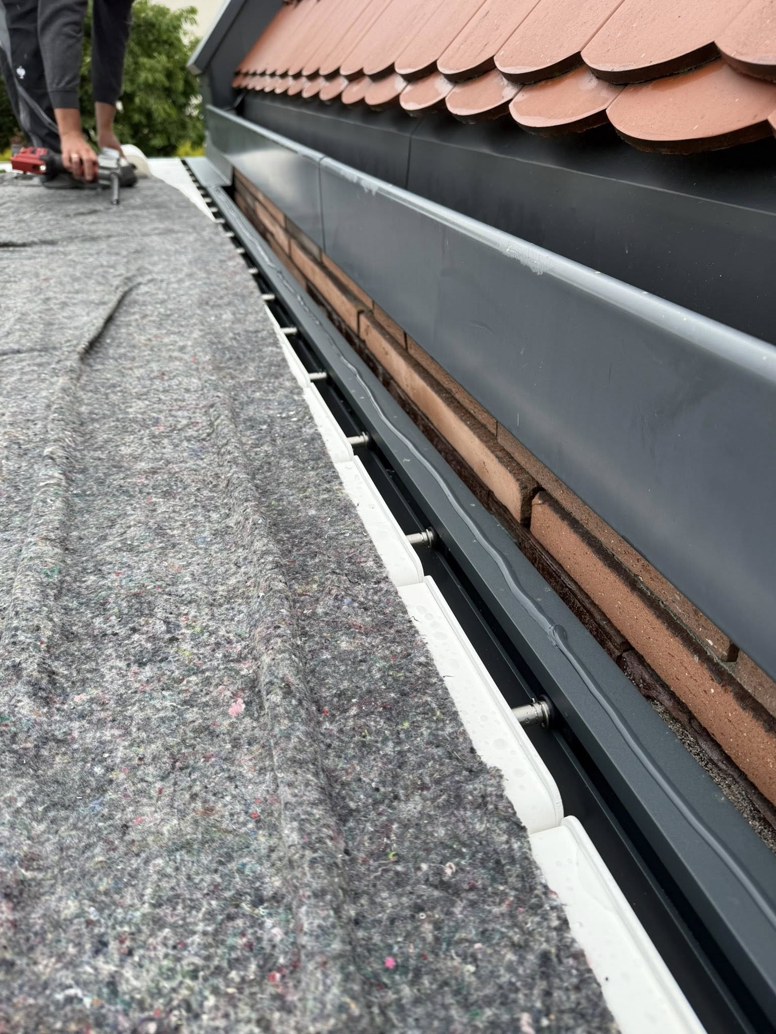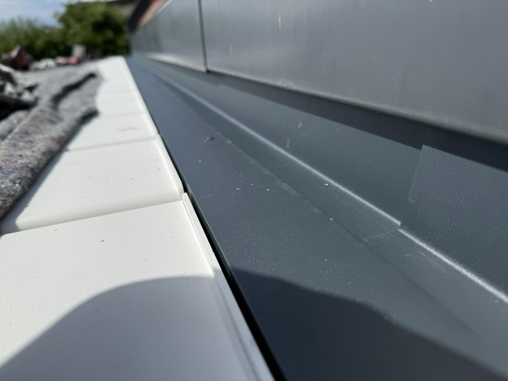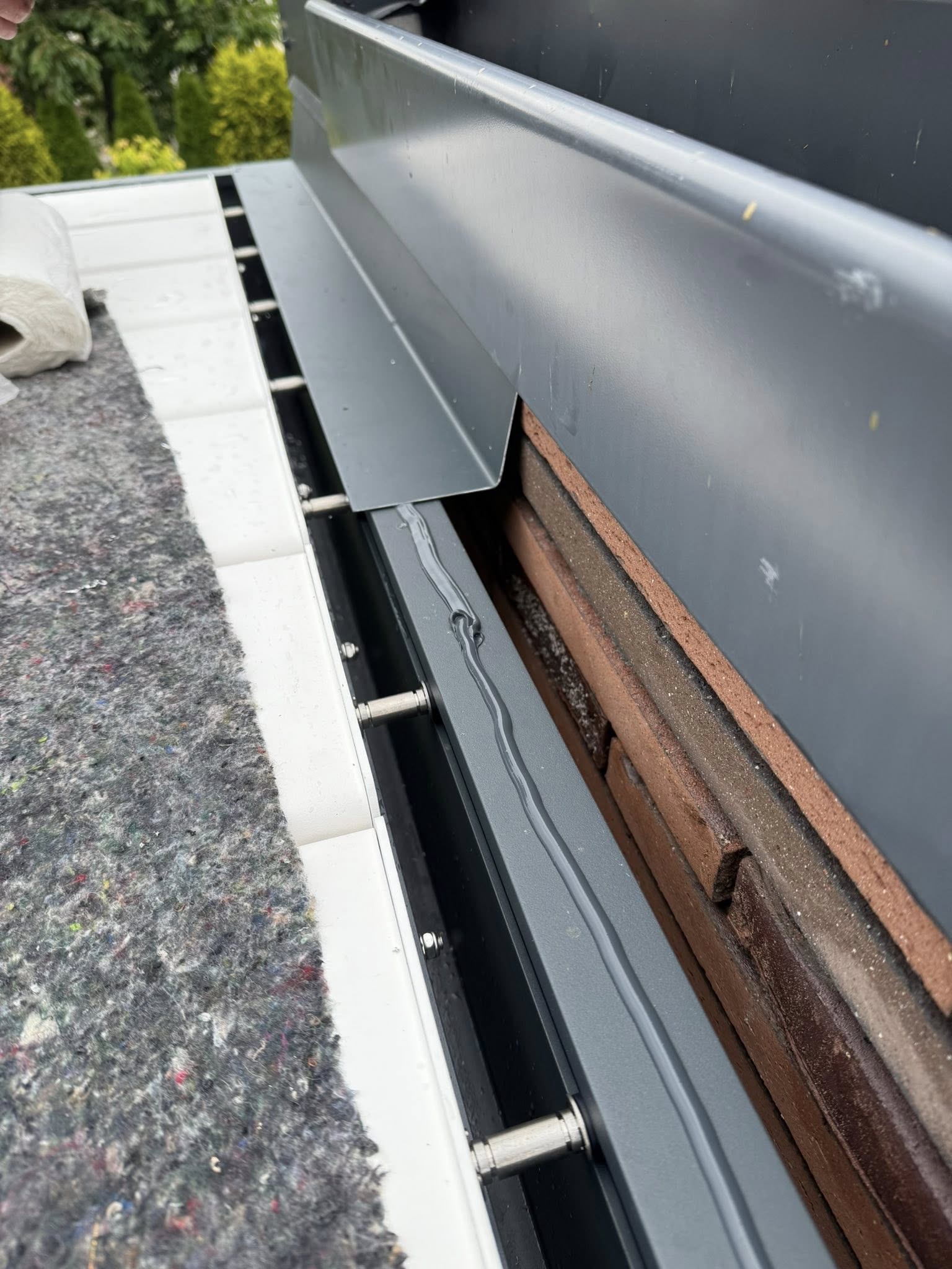 W tej realizacji pergola została przykręcona do specjalnych mocowań, które inwestor przewidział już na etapie wykańczania domu. Dzięki temu montaż przebiegł sprawnie, a konstrukcja została odsunięta od budynku. Kluczowym elementem było odpowiednie „opierzenie”, które zapewniło pełną szczelność i estetyczne wykończenie. Efekt końcowy prezentuje się bardzo dobrze – pergola jest funkcjonalna, solidna i świetnie dopasowana do architektury domu.